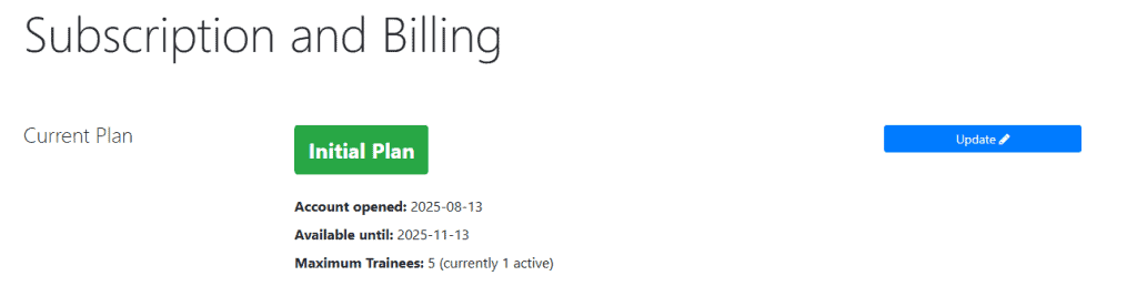 - To upgrade, select “Upgrade” button, and a pop-up window will appear. Here you can upgrade to our standard Culture & Compliance plan, or request one of our alternate plans. Clicking Update Now will prompt you to set up your preferred payment method — Credit Card or Direct Debit (incurs a processing fee of $2.50).