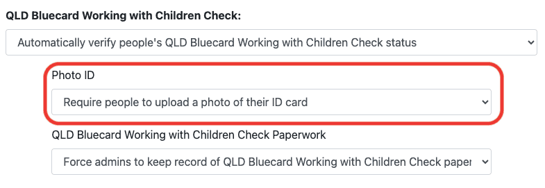 This feature is now available. To begin using this feature, log in to the dashboard, select Organisation Settings from the Settings Menu, and under Screening Options, select “Require people to upload a photo of their ID card” in the Working with Children Check verification options.